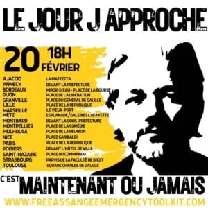 - Tweet SNJ : Les rassemblements pour la libération de Julian Assange ont réuni des centaines de personnes dans 17 villes partout en France ce mardi 20 février
